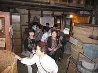 その後、高速道路を利用し、有田郡湯浅町へ向かいます。みかんの一大産地でもある有田ですが、ここ湯浅町は、日本の醤油の発祥地でもあります。昔ながらの作り醤油を営まれている「角長」へ展示蔵などを案内していただき、お買い物もできました。近所には金山時味噌を作っている味噌屋などにも行き、試食・お買い物をしたりしました。