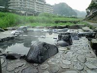 2日目早朝には川原の露天風呂にも入りに行きました。靄がかかった山々を眺め、川の流れを聞きながら入るお風呂は少し熱めでしたが、清々しく最高でした。