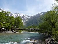 3日目は上高地、一般車両は入れませんが、ジャンボタクシーならそのまま入っていけます。この日も好天に恵まれ雪景色の穂高が綺麗に見えました。上高地の川の水はとても澄んでいて、川底まではっきり見えます。道々にニリンソウが白い花をつけかわいく咲いていました。夏には避暑で訪れる人が多く、河童橋も人だかりだと聞きますが、6月の今の季節は雪山も見れ、花々も見れ、とてもいい季節だと思います。