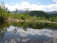 朝食も自家製のパンや、自家製イタドリジャムなどおいしくお代わりしました。朝食後、車で数分の一の瀬園地へ、この辺りで標高1500m、乗鞍高原のほぼ中央に位置していて、小川が流れ、その回りにはシラカバが茂っています。色々な趣を変えた池もたくさんあり、ハイキングコースとしても整備されています。 あざみ池:水が澄んでいて白樺が幻想的、まいめ池:雪景色の乗鞍岳が池に映って綺麗です。