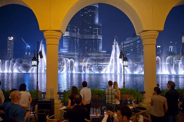 ドバイの夜の名物アトラクションで、噴水を中心とした水・光・音のイリュージョンショーです。
