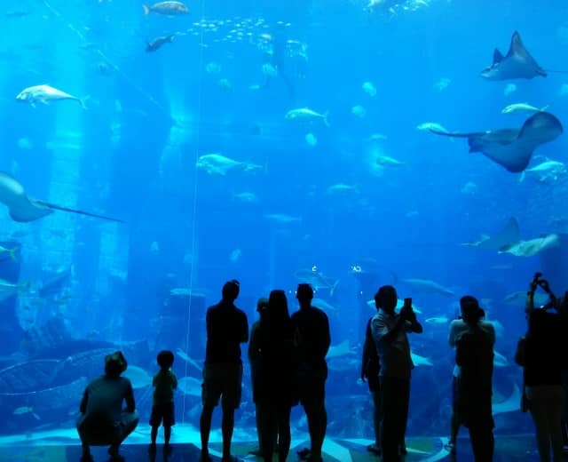 長さ32.88m、高さ8.3mの巨大なアクリルパネルの水槽に約3万3千もの海洋生物を見ることができます。