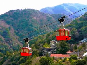 | 御在所ロープウェイ | 全長2,161mある御在所ロープウエイは、湯の山温泉から御在所岳山頂までを結ぶ日本有数のロープウェイです。 標高は1,212mあり、伊勢湾を臨むことができます。 紅葉シーズンは人気スポットになります。 運が良ければニホンカモシカを見ることもできるかもしれません。 |