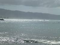 また、少し沖合にあるアリゾナ・メモリアル(慰霊碑)は沈没した戦艦アリゾナの上に建ち、アリゾナの先端部が海面に見え隠れします。