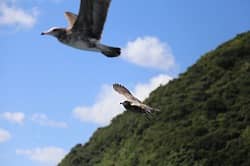 出港と同時にカモメたちが付いてきますので、餌となるかっぱえびせんを手に手を挙げると取りに来てくれかわいいです。