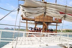 この船がコロンブスがアメリカ大陸へ到達した際に使っていた船を約2倍にして復元したサンタマリア号です。