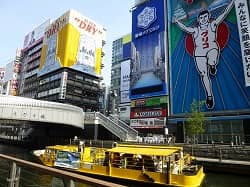 【道頓堀】へは日本橋までバスで行き、そこから200mほど歩いて行くとドンキホーテの前がとんぼりリバークルーズの乗場となります。