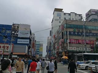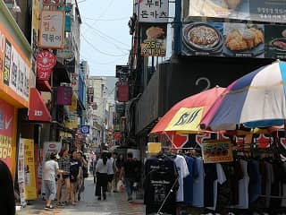 梨大は、支庁駅からメトロ2号線で3駅と、移動しやすく、駅前に広がる大通りに小さな店が多く並んでいるため、