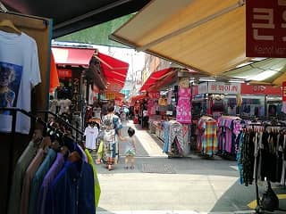 「照明の通り」「マーケット通り」他、大きく5つの通りに分かれていて、若者向けの洋服店やアクセサリー店、コスメ店などもあり、地元客だけでなく、多くの観光客でにぎわっています。